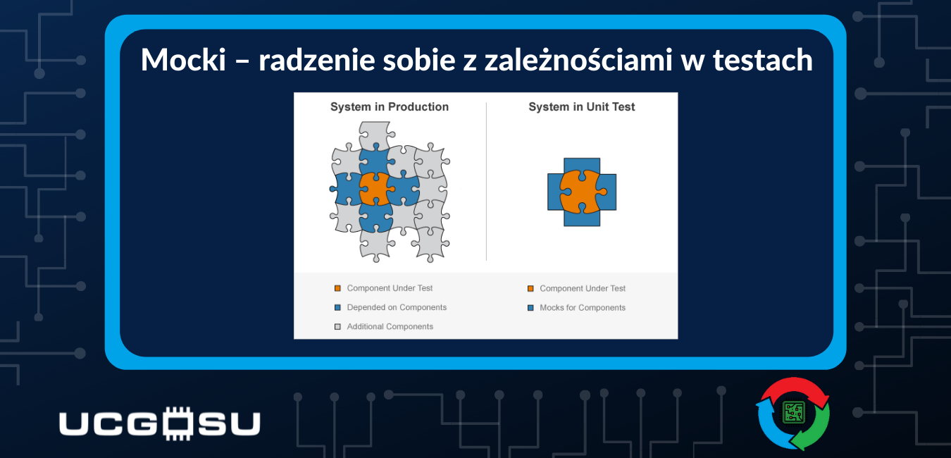 - Zależność od elementu, do którego nie ma dostępu – dzięki mockom możemy tworzyć testy do modułów komunikujących się z zależnościami, które nie zostały jeszcze zaimplementowane. Wystarczy, że mają zdefiniowany interfejs. Innym przykładem jest interakcja z aplikacją działającą na produkcji, z którą nie możemy się komunikować podczas automatycznego testu.