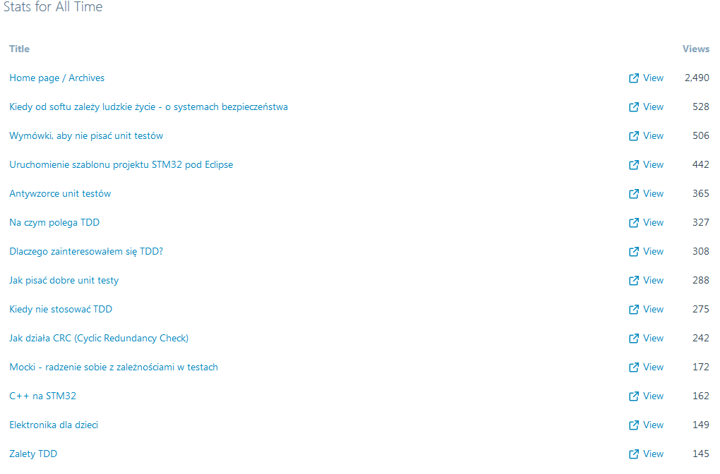 Lista najpopularniejszych wpisów natomiast wygląda tak: