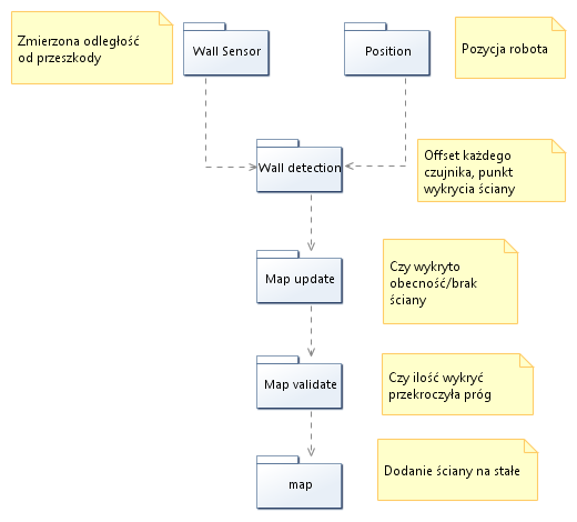 Elementy biorące udział w dodawaniu informacji o ścianach do mapy zostały przedstawione na poniższym rysunku: