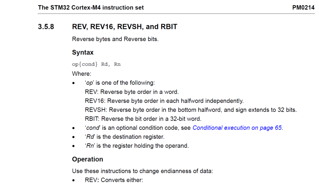 Czasem nasz procesor posiada instrukcje, których kompilator C normalnie nie wykorzystuje. Na przykład w Cortexach mamy cały zestaw ciekawych operacji bitowych – liczenie zer i jedynek, odwracanie bitów i bajtów w danym słowie 32-bitowym.